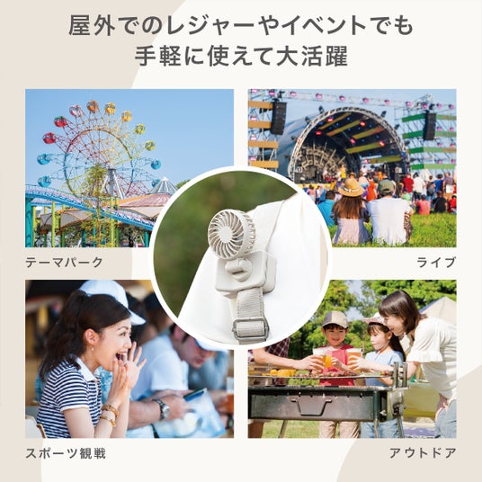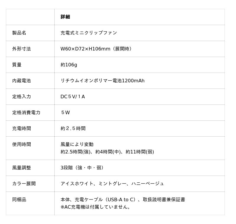 ニュアンスカラーの「充電式ミニクリップファン」は、“ハンディ・卓上・クリップ”の3WAY仕様で、シーンに合わせて使い方を自在に変えられる新感覚の多機能ファンです。オフィス、アウトドア、キッチンなど、どこでも使える設計で、快適な夏をサポートします。