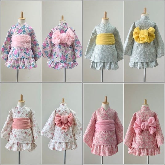 ・ワンピースかパンツ付きスカートを着て、上衣を羽織って帯を結べば完成です。