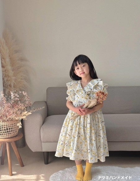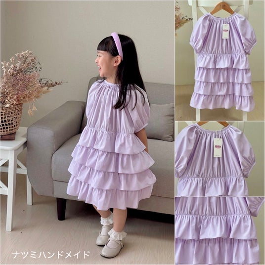 シンプルで上品なデザインの、ふんわりやさしいお色のワンピースです。この夏、親子のお揃いコーデで思い出の写真を撮ってみませんか?