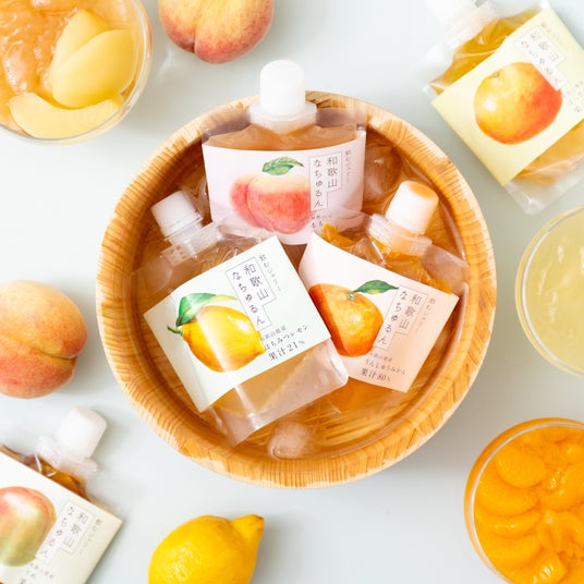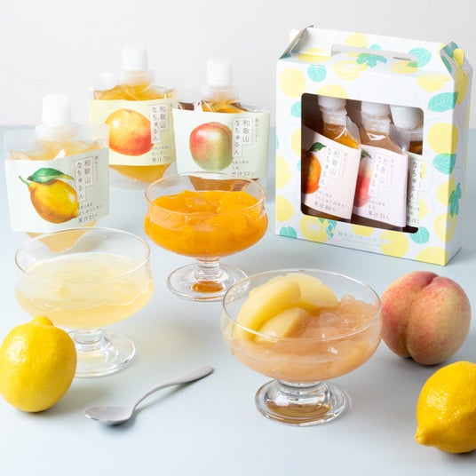 和歌山県産果汁をたっぷり使った、濃厚な甘さととろっとした食感が特徴の飲むゼリー。