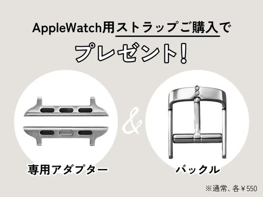 Knot THE STRAPキャンペーン!アダプターとバックルをプレゼント期間中Apple Watch用にストラップをお買い上げのお客様に専用アダプター(¥550)とバックル(¥550)をプレゼント。開催期間:7/4~7/21