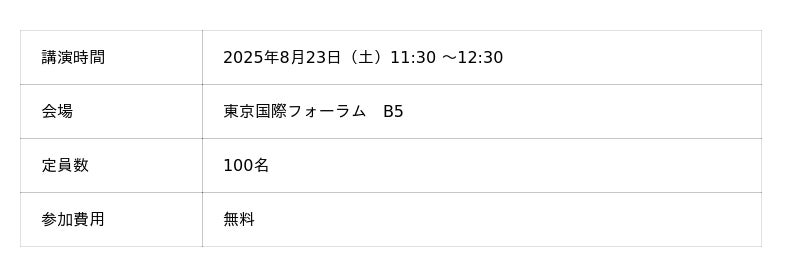 2025年8月23日(土)11:30より服部 誠 氏 が特別講演に登壇。東京国際フォーラムB5会場