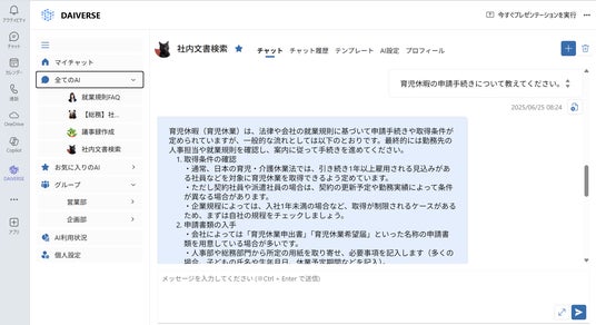 AI Agentを活用した業務効率化を支援する株式会社KMS(代表取締役社長:梶原 健太郎)は、「Microsoft Teams*(以下、Teams) 」上で、Azure OpenAI Serviceを活用した『DAIVERSE』が利用可能になったことを発表しました。PC・スマートフォンの両方から利用可能と、場所を問わずAI Agentによる業務支援を受けることが可能となりました。これにより、外出中・会議中などでも情報収集・要約・問い合わせ対応を行うことができるようになり、さらなる業務効率化と柔軟な働き方の実現を支援します。