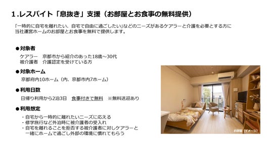 1.レスパイト「息抜き」支援(お部屋とお食事の無料提供)