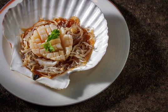 大帆立貝の香港風ガーリック香り蒸し特製醤油ソース