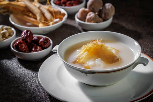魚のコラーゲンがやさしいスープ。疲れを取り養生にも良いといわれる鬼蓮の実と蜜なつめと一緒に壺で時間をかけてじっくりと炊き込んだ一品です。
