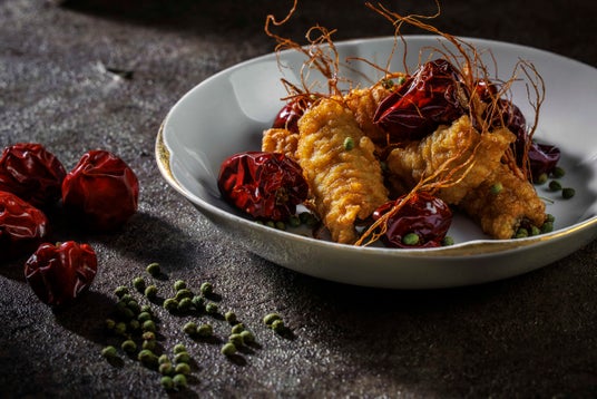 滋養効果がうたわれる鰻を、青山椒ととうがらしで香り付けしたスパイスソルトで炒めました。揚げた朝鮮人参を添えてお召し上がりいただきます。