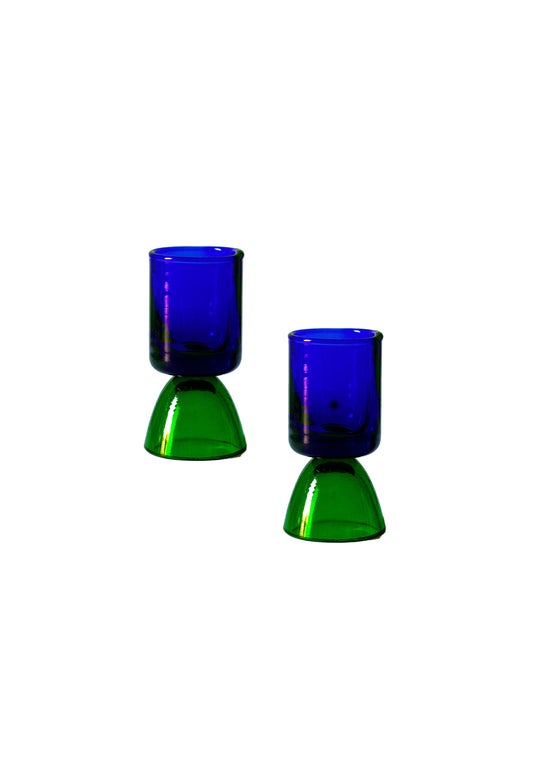 トスカーナの職人によって作られたテキーラカップ。深みのあるブルーとグリーンのコントラストが印象的なデザインで、