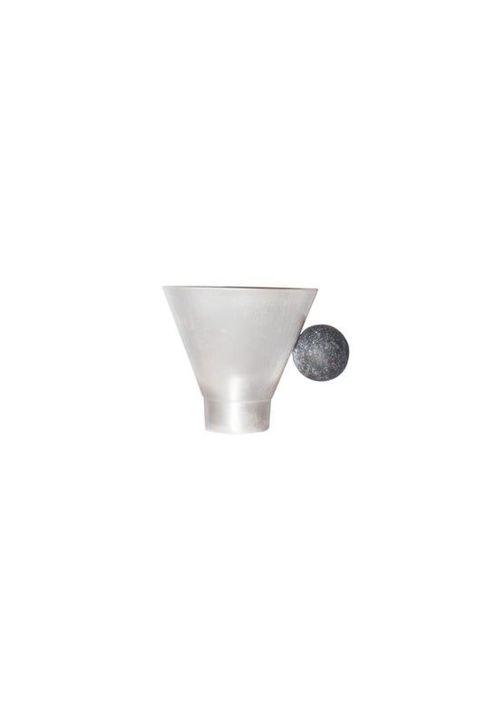 円錐型のフォルムが印象的なミニマルデザインのカップ。真鍮にシルバーメッキを施し、黒溶岩石をハンドルに配したコンパクトなサイズは、エスプレッソやデザートカップとしても活躍します。