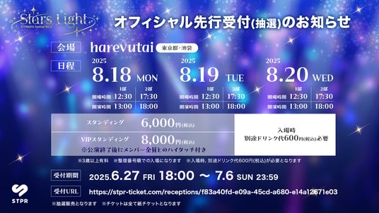 株式会社STPR(本社:東京都渋谷区、代表取締役:柏原真人、以下「STPR」)は、弊社が活動をサポートしている「STPR BOYS PROJECT」(以下、「BOYS」)による初のライブ『STPRBOYS Festival Vol.1 《STARS LIGHT -スターズライト-》』を、2025年8月18日(月)~8月20日(水)の3日間で開催することを発表いたしました。
