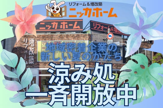 今年も店内を涼しくしてお待ちしています!全国100店舗超の住宅リフォーム企業・ニッカホームが、関東34拠点のショールームを“涼み処”=クーリングシェルターとして無償開放中。地域の方のひと休みに。