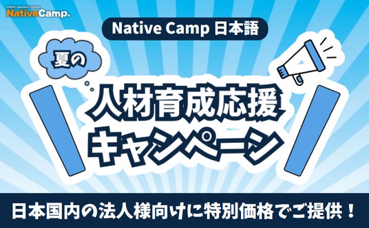 株式会社ネイティブキャンプ(本社:東京都渋谷区、代表取締役社長:谷川国洋)が提供するオンライン日本語会話サービス『Native Camp Japanese』は、このたび、法人向け日本語研修サービスにおいて「夏の人材育成応援キャンペーン」を実施いたします。