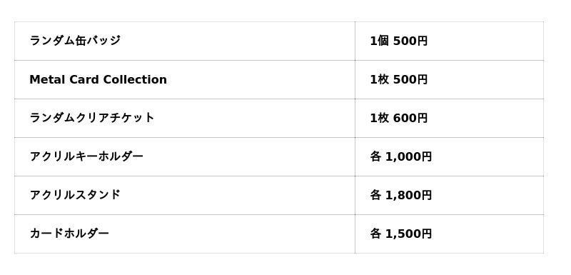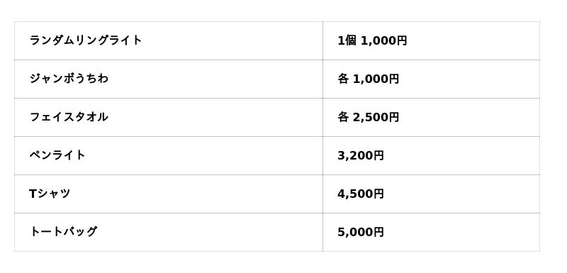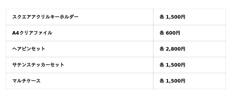 グッズは全17種類!どのグッズもワンマンライブを盛り上げるラインナップとなっております。