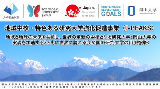 - 岡山大学 文部科学省「地域中核・特色ある研究大学強化促進事業(J-PEAKS)」に採択~地域と地球の未来を共創し、世界の革新の中核となる研究大学:岡山大学の実現を加速とともに世界に誇れる我が国の研究大学の山脈を築く~