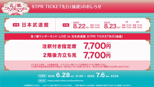 ― 『言ノ葉ワンダーランド LIVE in 日本武道館』 2025年8月22日(金)・23日(土)開催 ―