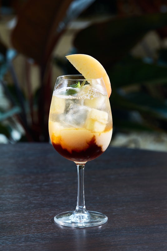ピーチティーソーダ上品に香る紅茶と特製のピーチソースに、爽やかな炭酸を注いだオリジナルソーダ。仕上げに桃の果肉を添えた、味わいも見た目も華やかな一杯。