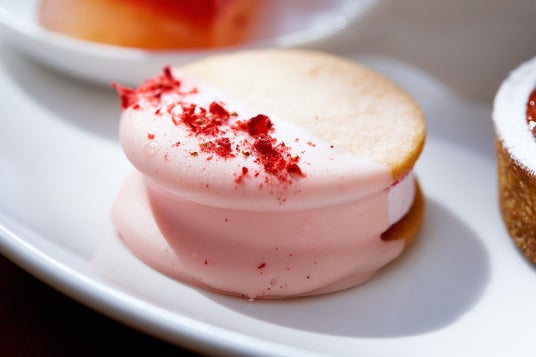 桃の優しい香りとバニラの甘みが溶け合うふんわり食感のギモーヴをスモア仕立てに。