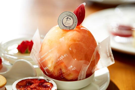 桃杏仁氷桃の果肉をふんだんに使ったソースと桃のシャーベットで桃の風味を贅沢に味わえるかき氷。中には杏仁豆腐のやさしい甘さが広がる新しいフレーバー。
