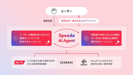 株式会社ユーザベース(以下ユーザベース)は、市場調査や競合分析のための高度なタスクを自律的に遂行する、経済情報に特化したAIエージェント「Speeda AI Agent(スピーダ AI エージェント)」を2025年夏より順次提供開始することを発表します。