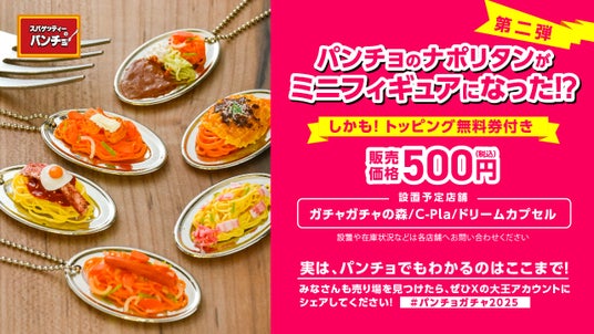 “改めてナポリタンはうまいと言わせたい”を理念に掲げる「スパゲッティーのパンチョ」のナポリタンをイメージしたカプセルトイ「スパゲッティーのパンチョ ミニチュアコレクション2」が2025年6月下旬に発売されます。