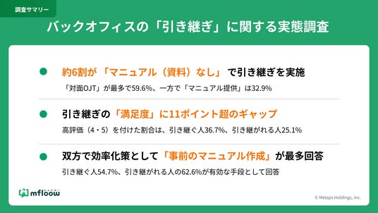 約6割のバックオフィス担当者がマニュアルなしで引き継ぎ対応、伝える側・受け取る側で手応えにズレも