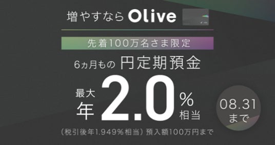 『【増やすならOlive】金利最大年2.0%(税引前)相当!6ヵ月もの円定期預金特別上乗せキャンペーン』