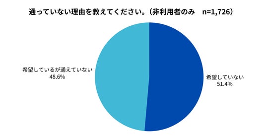 発達支援サービス・療育を受けていない1,726名に、その理由について聞きました。このうち「希望していない」と回答したのは51.4%(887名)でしたが、残りの48.6%(839名)は希望しているにもかかわらず、適切な支援を受けられていない“療育難民”状態であることが判明しました。