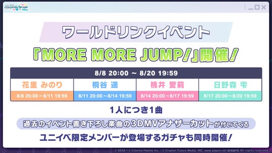 8月8日(金)20:00より、「MORE MORE JUMP!」の「ワールドリンクイベント」を開催することが決定いたしました。