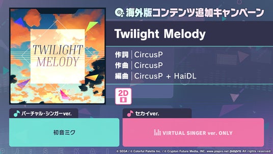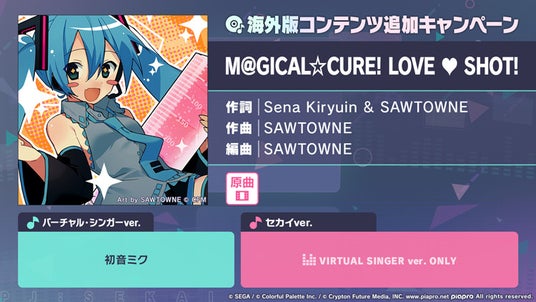 著作権表記:(C) SEGA / (C) Colorful Palette Inc. / (C) Crypton Future Media, INC. www.piapro.net All rights reserved.