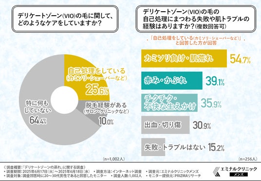 では、デリケートゾーン(VIO)の毛の自己処理で失敗した経験や、肌トラブルが起きたことはあるのでしょうか。