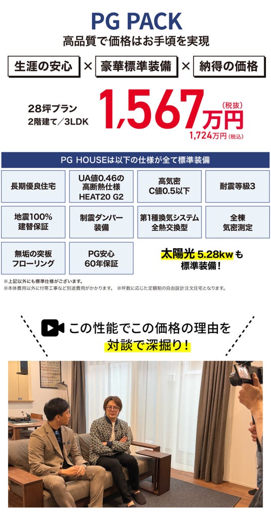 「PG HOUSE 浜松」は、コストパフォーマンスに優れた高性能住宅として全国の工務店から注目を集め、視察会には14社・42名の工務店関係者が来場しました。株式会社LIFEFUND(本社:浜松市、代表取締役:白都卓磨)が手がけるこの住宅モデルは、業界内外からの関心を集めており、登録者数100万人超のYouTubeチャンネル「青汁王子 三崎優太チャンネル」でも取材・紹介されました。