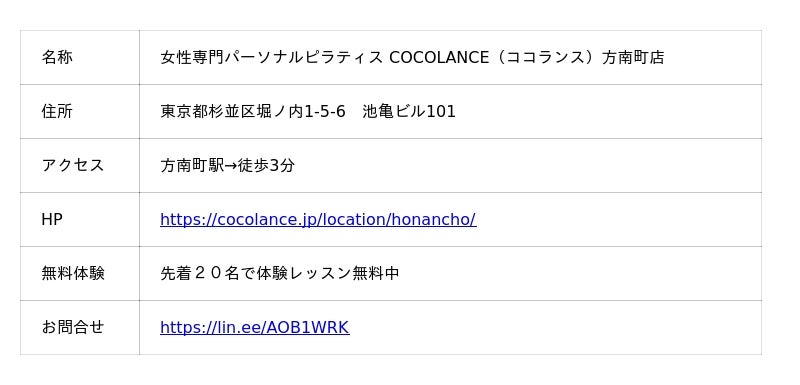 【方南町駅 徒歩5分】女性専門パーソナルピラティス COCOLANCE(ココランス)方南町店が2025年8月1日にオープン