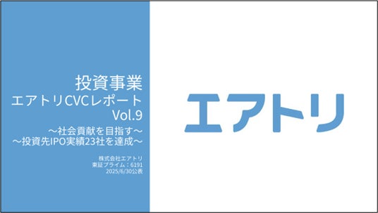 「投資事業 エアトリCVCレポート Vol.9~社会貢献を目指す~~投資先IPO実績23社を達成~」