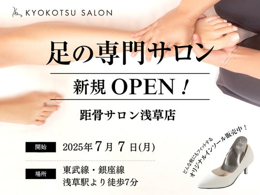【全国99店舗目】足元から健康を支える「距骨調整(R)」が浅草に初上陸!2025年7月7日(月)に「距骨サロン浅草店」が新規OPEN!足トラブルからむくみケアまで足のことなら何でも相談。
