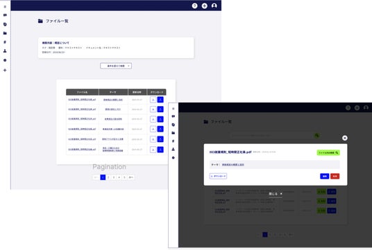登録されたファイルから、AIが自動で「テーマ」と「要約」を抽出し、さらに事前に設定した「タグ」と紐付けて一覧表示します。これにより、ファイルの内容を俯瞰的に把握でき、情報の整理と検索性を高めます。各データの詳細確認や編集も可能です。