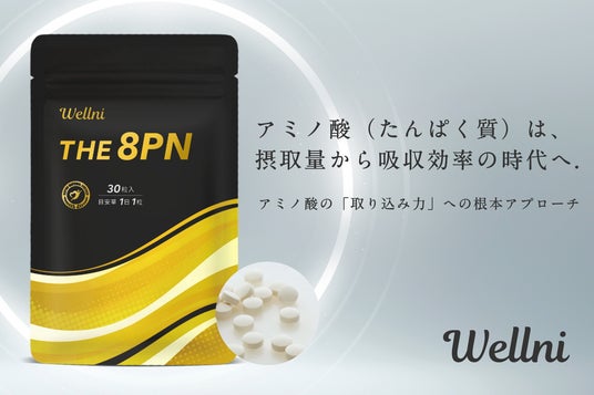 【新商品】プロテインのウェルニから「アミノ酸の取り込み力」に着目したサプリが発売。《THE 8PNサプリメント》で、アミノ酸は摂取量から摂取効率の時代へ。
