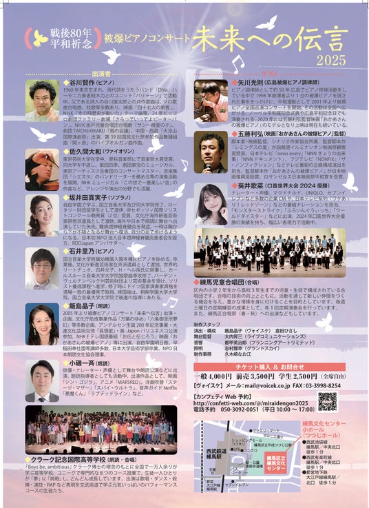 ゲストには口笛世界大会2024優勝の葵井歌菜、被爆ピアノ調律師 矢川光則、映画監督 五藤利弘のほか、練馬児童合唱団、琵琶 黒田月水など多彩な顔触れが揃います!