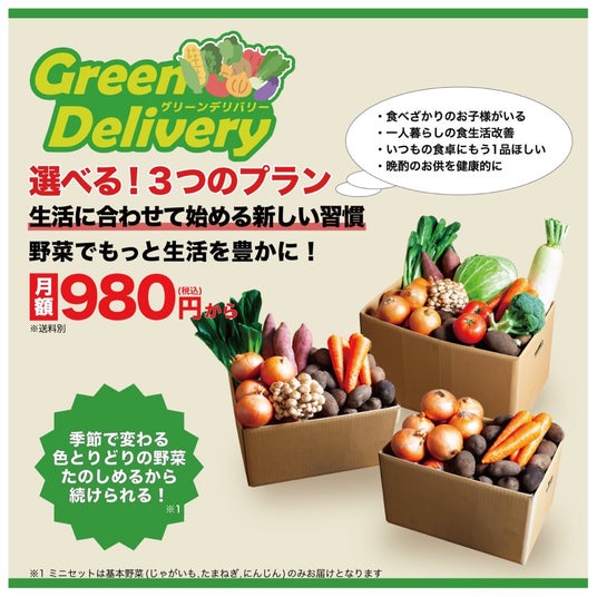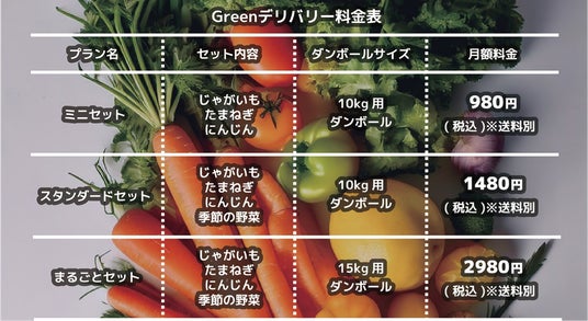 “ふぞろい"でも栄養満点な国産野菜を、野菜高騰時代の強い味方、そしてフードロス削減を実現するサブスクリプションサービス『GREENデリバリー』