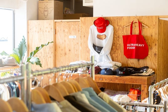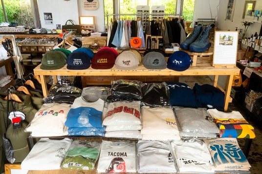 さらに、三島の人気ラーメン店「ラーメンやんぐ」のオリジナルTシャツや、同じく三島発のブランド「SLEEPYY」のアイテムなども揃い、ブランドと地域、人と人のつながりの積み重ねが、ショップ全体のセレクションと世界観をかたちづくっています。