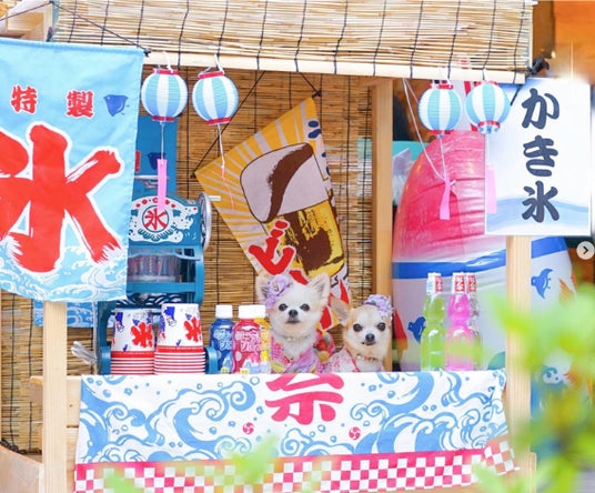 わんこ用サイズの夏祭りフォトブースセットをご用意。夏気分をわが子とお楽しみいただけます。