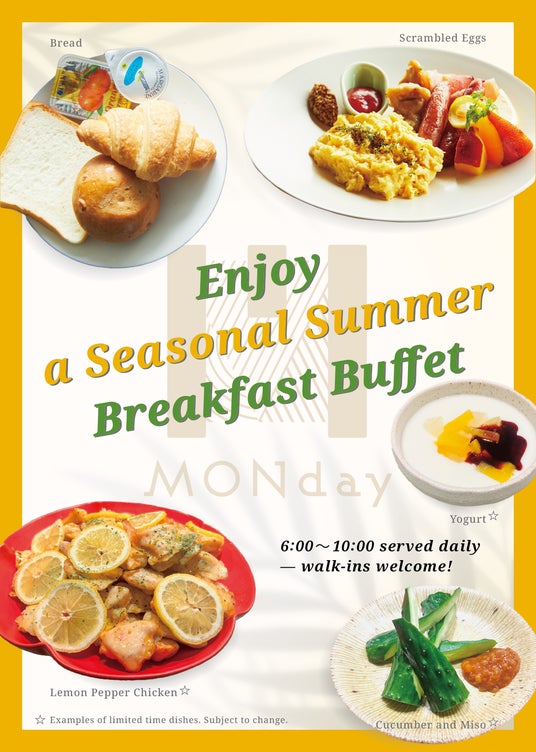 - 夏バテ対策に!朝食でエネルギーチャージ!朝からしっかり食べられない…そんな方にもやさしい、ビタミンやたんぱく質を意識した“夏の朝ごはん”を各施設でご用意しております。栄養バランスだけでなく、見た目や香りにも涼しさを感じられるよう工夫しています。“暑さに負けないカラダづくり”を、旅先の朝食からサポートします。
