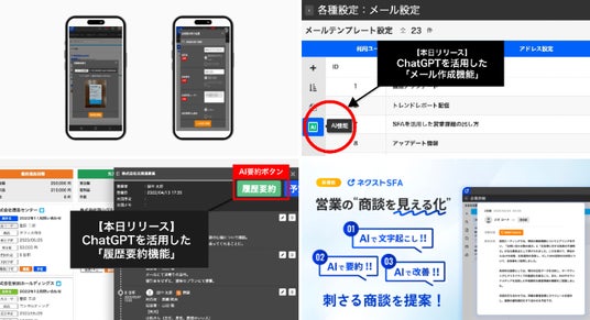 ▼営業支援ツール「ネクストSFA」、ChatGPTなどの生成AIを活用した新機能を続々とリリース