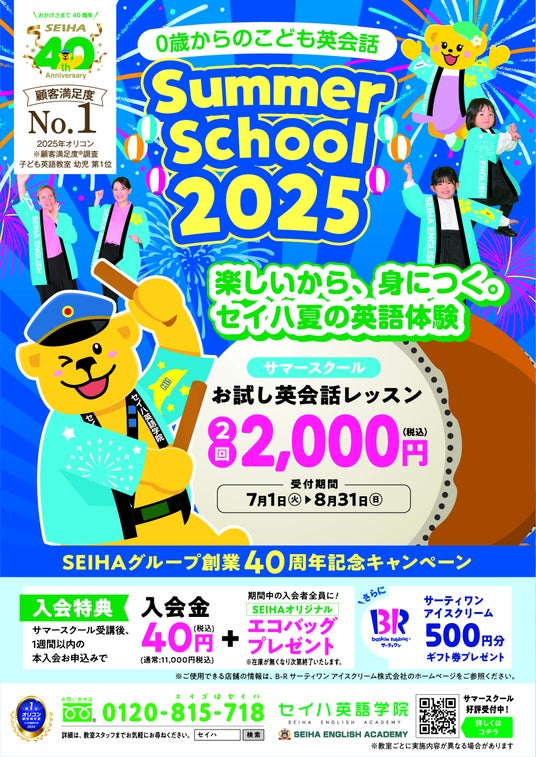 セイハネットワーク株式会社(福岡県福岡市,代表取締役:坂口 正美,以下セイハネットワーク)は、夏のキャンペーン「サマースクール2025」“楽しいから身につく。セイハ夏の英語体験“