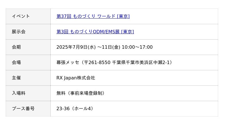 【生産管理とDXのテクノア】が『第3回 ものづくりODM/EMS展 [東京]』に出展します