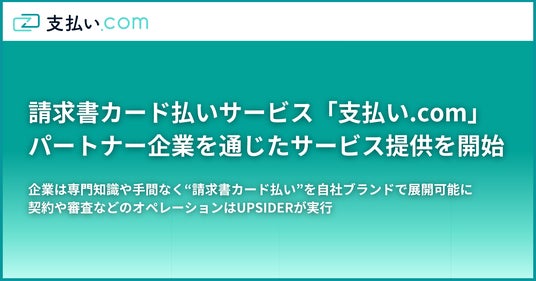 「挑戦者を支える世界的な金融プラットフォームを創る」をミッションとする株式会社UPSIDER(本社:東京都港区、代表取締役:宮城徹・水野智規、以下 当社)は、当社が株式会社クレディセゾンと共同で提供する請求書カード払いサービス「支払い.com」において、新たにパートナー企業を通じたサービス提供を開始することをお知らせいたします。