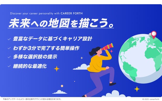 「キャリアフォース」は、三井物産の社内公募を経て三井物産子会社のベンチャースタジオMoon Creative Labが手がける新規事業として2022年に採択され、2023年にベータ版の提供を開始。2024年6月に運営会社キャリウム株式会社を設立しました。これまで法人向けに提供してきた、専門性の高い若手プロフェッショナルを対象とした、キャリアパスの可能性を定量的に可視化・マップ化するサービスに加え、「AIキャリアデザイナー」の新機能追加により、個人ユーザーがより直感的に自身のキャリア戦略を構築できるようになりました。個人がデータドリブンでバイアスのないキャリアを設計できる環境を提供し、情熱を持てる職業人生の実現を支援します。