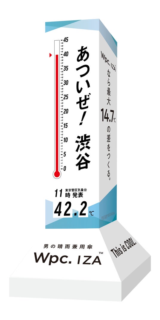 シリーズ累計販売数約160万本※1を突破!男性用日傘ブランド「Wpc. IZA」 渋谷の真ん中で“暑さに立ち向かう”日傘体験を。SHIBUYA109前にメッセージパネル&巨大温度計パネルが登場!