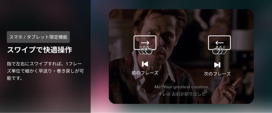 「abceed for DMM」プランでは、人気の映画・ドラマ作品『スパイダーマン』や『アイアンマン』などを活用し、abceed上で英語学習が可能です。以下のようなabceed独自の学習機能により、効率的かつ実践的な英語力習得をサポートします。