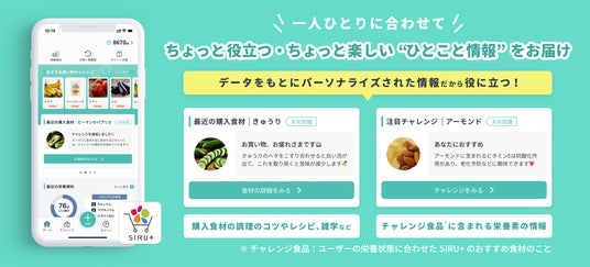 シルタス株式会社(本社:東京都港区、代表取締役:小原一樹、以下「当社」)は、2025年7月1日より、栄養管理アプリ「SIRU+(シルタス)」に新機能「お役立ちコンテンツ」β版をリリースいたします。本機能は、ユーザーの購買データや栄養状態をもとに、アプリ内で食品に関する知識や活用法をパーソナライズして配信します。日々の買い物に新たな発見をもたらし、マンネリ化しがちな買い物を解消して、より楽しく健康的になることを目指します。