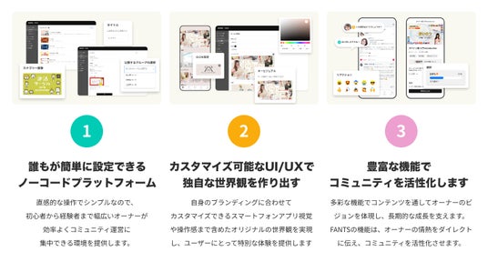 FANTSは、誰でもノーコードで自分だけのオンラインビジネス基盤を構築できる、オンラインコミュニティプラットフォームです。チャット、コンテンツ配信、講座販売、イベント管理、決済など、運営に必要な機能をオールインワンで提供しており、運営に必要な手間は最小限になっています。現在は、教育・美容・フィットネス・キャリア支援など、さまざまな領域の個人・法人の皆様にご利用いただいています。